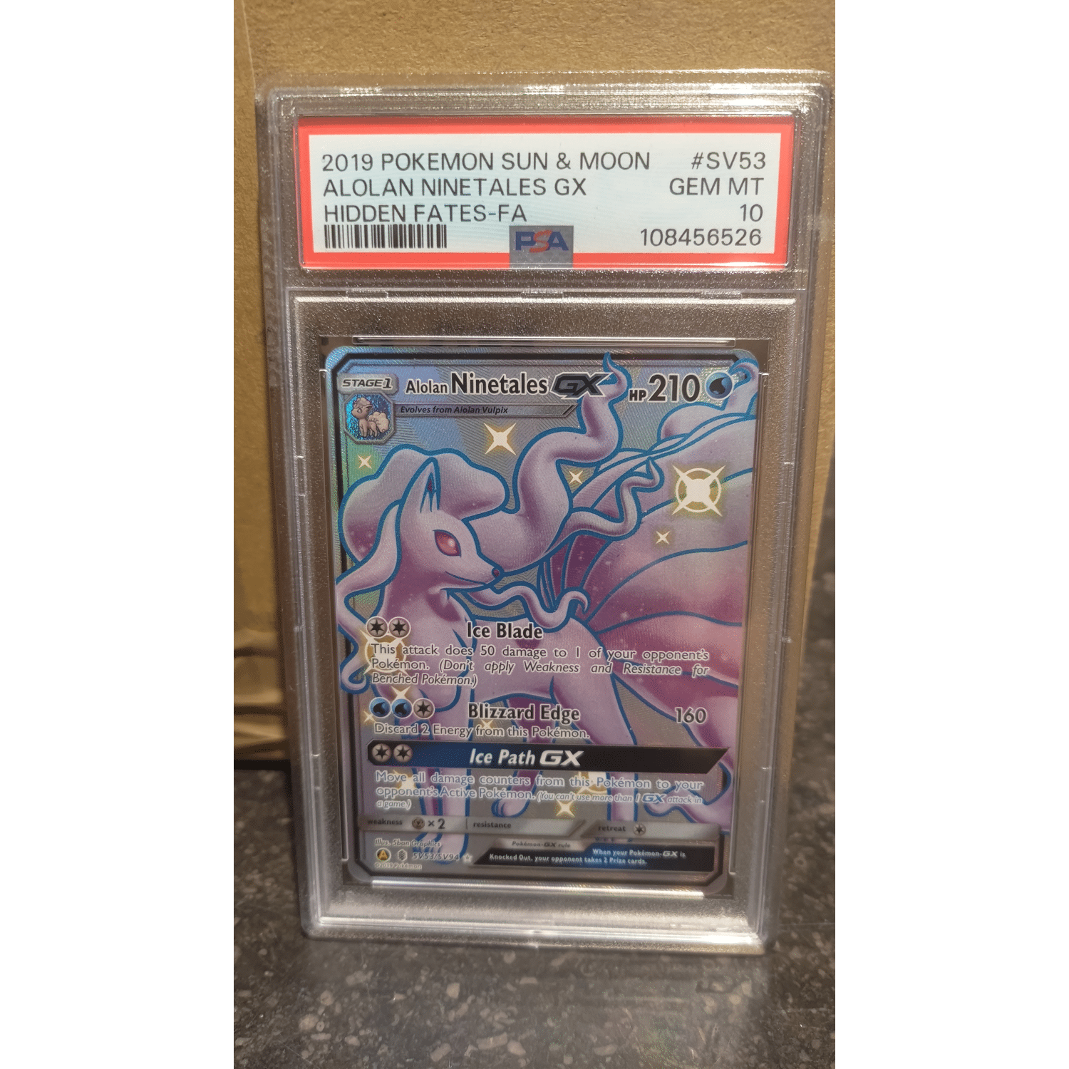 CARDS 2019 Alolan Ninetales GX Hidden Fates PSA 10 (#SV53) Graded Slab