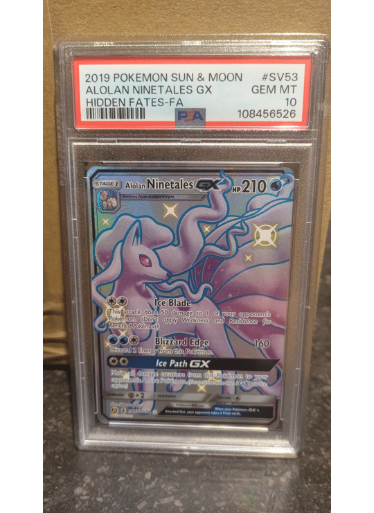 - Product: CARDS 2019 Alolan Ninetales GX Hidden Fates PSA 10 (#SV53) Graded Slab
